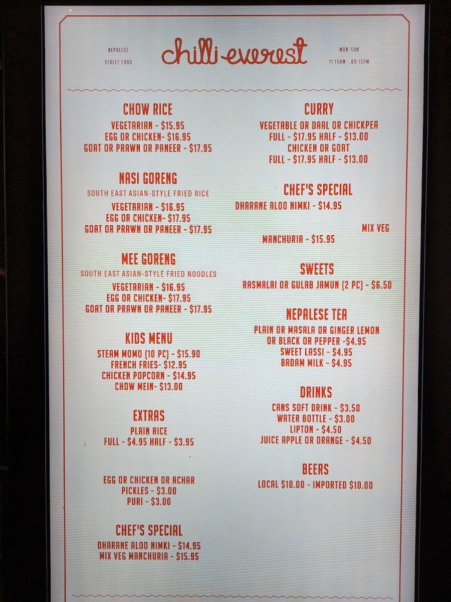 The menu boasts a variety of traditional dishes, with highlights like succulent momos and flavorful thukpa, evoking the essence of Nepal's rich culinary heritage. Customers rave about the generous portions and reasonable prices, making Chilli Everest a fantastic spot for family outings or casual dinners. While some dishes may take a little longer to arrive, the delectable flavors and authentic taste are well worth the wait. With a commitment to serving halal options alongside a selection of alcoholic beverages, Chilli Everest caters to diverse preferences, making it a must-visit for anyone seeking genuine Nepalese fare in Melbourne.